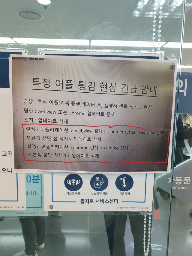 현재 안드로이드폰을 이용하는 일부 고객에게 로그인 화면에서 접속이 비정상 종료되는 현상이 발생하고 있습니다. 조치 방법은 아래와 같습니다.