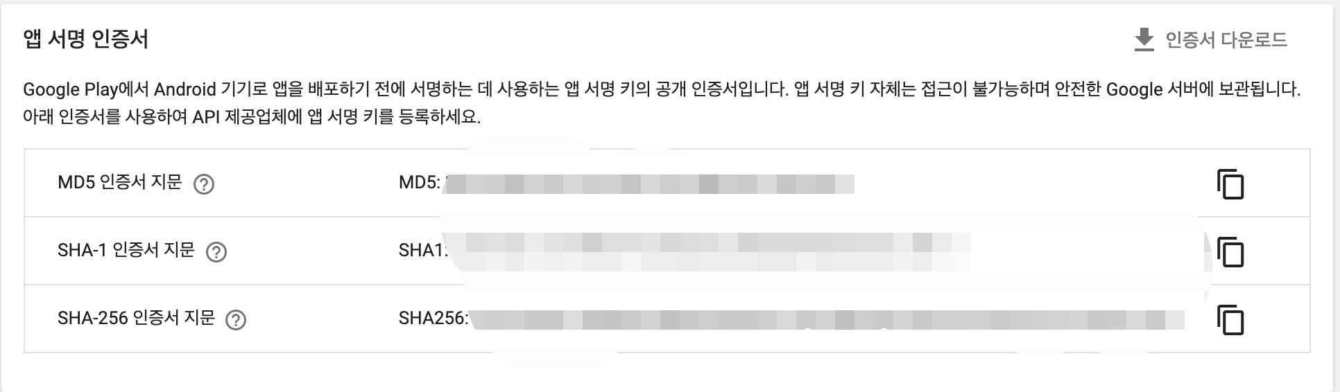 두번째 SHA-1 인증서 지문